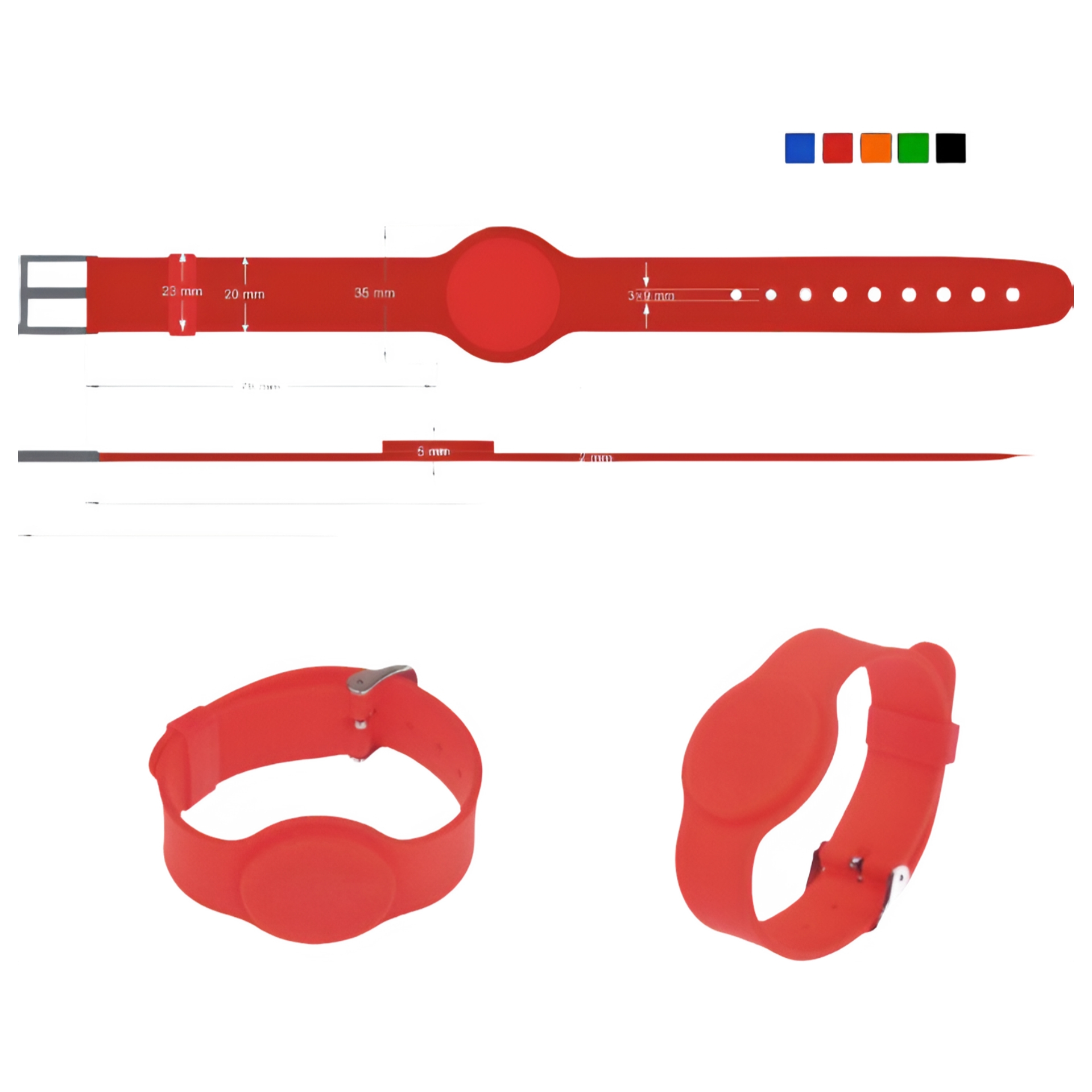 Данный браслет относится к rfid-технологиям пассивного типа: электромагнитный сигнал браслета индуцируется электромагнитным импульсом от считывающего устройства. В силу этого браслет — близкого действия, т.е. появление сигнала возможно на расстоянии до 1 метра от считывающего устройства.