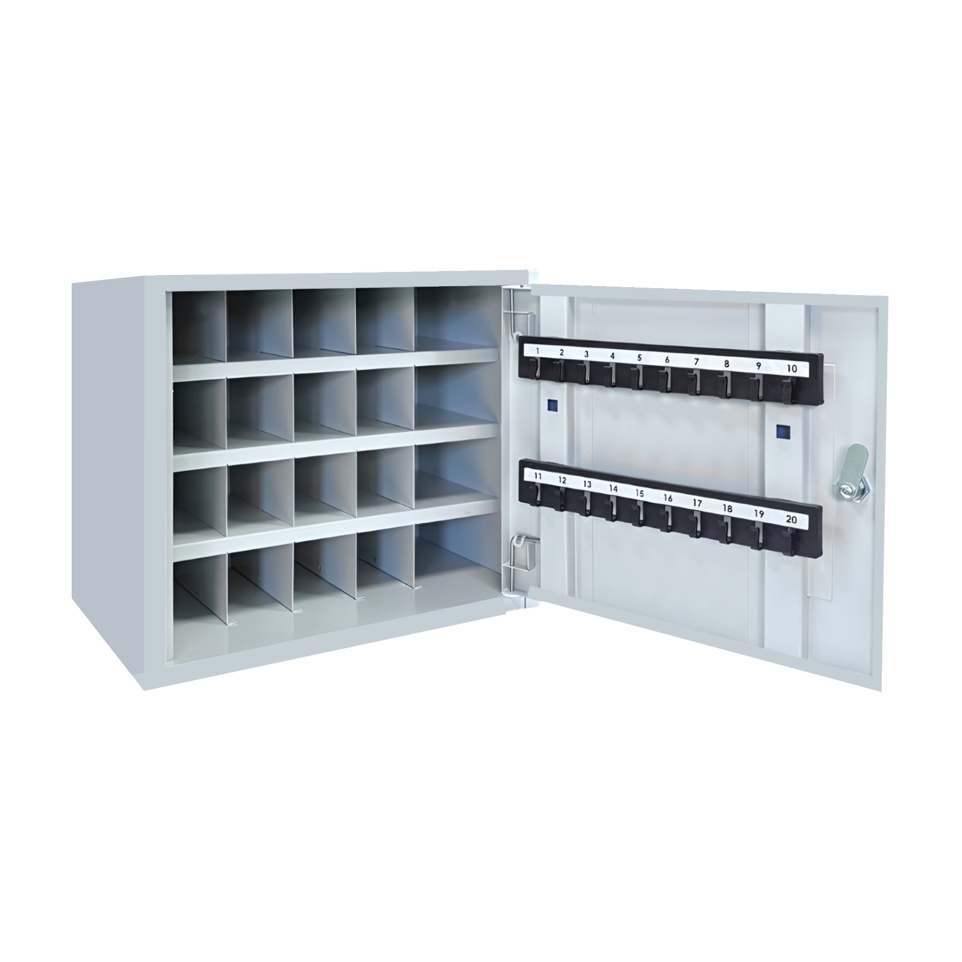 Внутри Пенальницы Т-20 расположены специальные ячейки для хранения 20 пеналов для ключей и 2 планки для размещения 20 комплектов ключей.