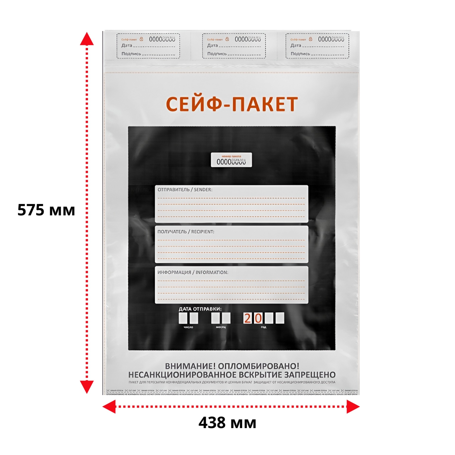 Сейф-пакет — это специализированная упаковка, предназначенная для безопасной транспортировки и хранения документов, денег, ювелирных изделий и других ценных вещей. Сейф-пакеты обеспечивают защиту содержимого от несанкционированного доступа, влаги, пыли и механических повреждений.Изготавливаются из многослойных полимерных пленок высокой прочности, обеспечивающих надежную защиту от проколов, разрывов и влаги. Закрываются путем склеивания клапанов специальными адгезивами, что делает пакет герметичным и безопасным. Каждый пакет оснащены индикаторами вскрытия, которые показывают попытку проникновения внутрь пакета. Сейф-пакеты снабжены полями для заполнения информации о владельце, отправителе и получателе, что облегчает учет и отслеживание перемещения пакетов.