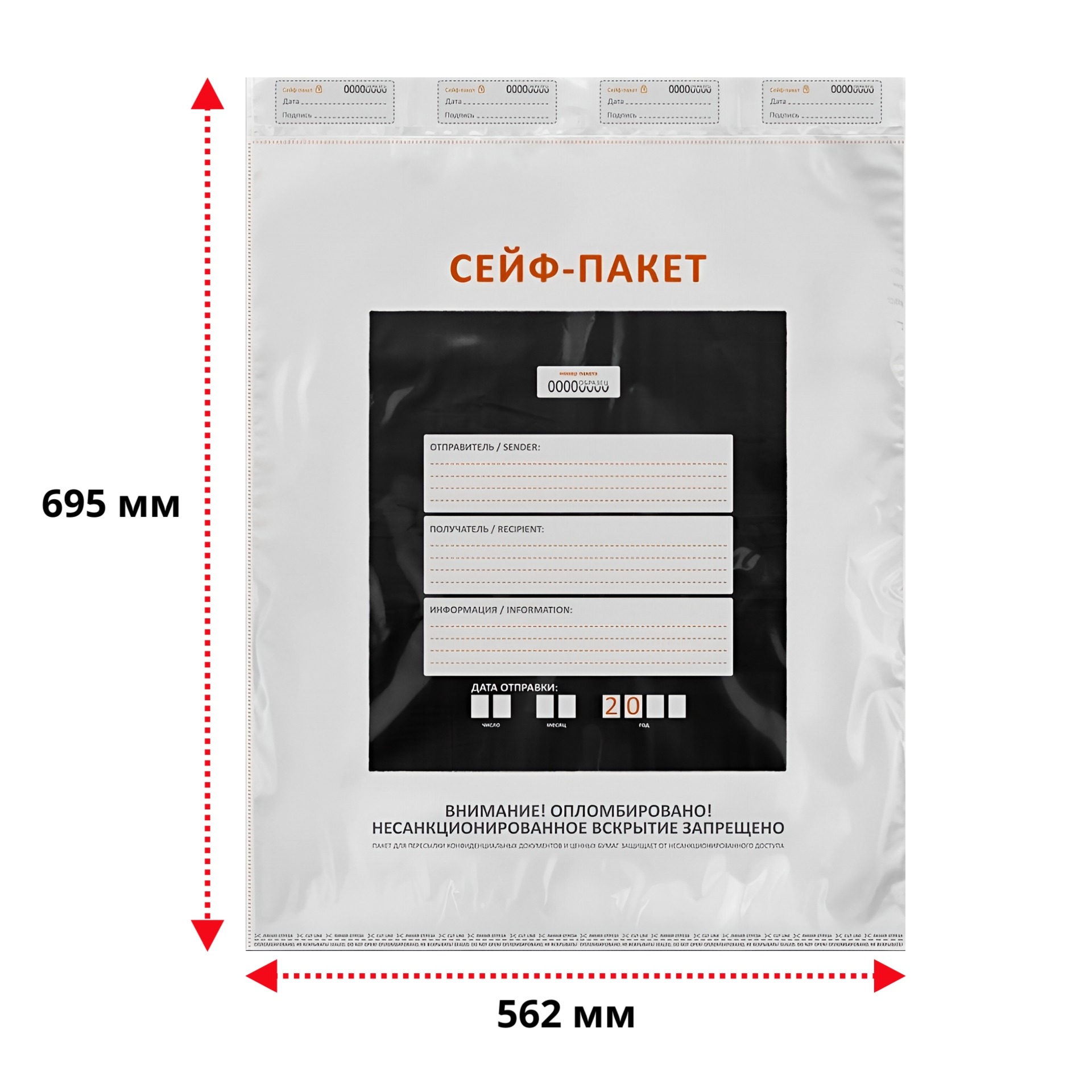 | Сейф-пакет 562*695+45мм / 80мкм А-2 | 98 | 94 | 90 |